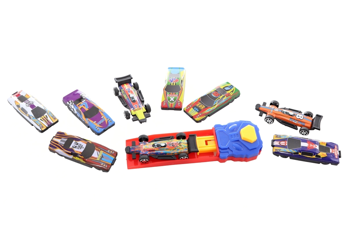 Obsah balenia zahŕňa 9 kovových áut a vystreľovaciu základňu, s ktorou ľahko vytvoríte napínavé pretekárske scenáre. Kompaktné rozmery sú ideálne na domáce aj cestovné hranie.