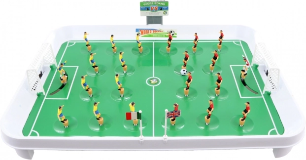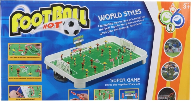 Set obsahuje všetko, čo potrebujete na kompletný zápas: dve bránky, loptičku, 22 hráčov v dvoch farbách, vlajky, samolepky a počítadlo skóre. Odolný plastový materiál a stabilná konštrukcia zaistia dlhú životnosť a bezpečné hranie pre deti od 3 rokov.