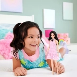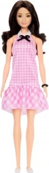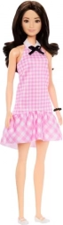 Bábika Barbie Fashionistas prináša moderné poňatie retro štýlu inšpirovaného lookom Quick Curl z roku 1973. Elegantné ružové šaty v gingham vzore dopĺňa čierna mašľa pri výstrihu, biela obuv a čierny náramok – všetko spolu tvorí šik outfit na každodenné aj slávnostné hranie.