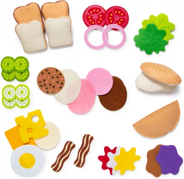Táto sada obsahuje 33 rôznofarebných dielov, ktoré deťom umožňujú zostaviť rôzne druhy sandwichov. Hračka je navrhnutá tak, aby podporovala imaginatívnu hru a rozvoj motorických zručností. Deti sa môžu baviť samy alebo v skupine, čo prispieva k ich sociálnemu rozvoju.