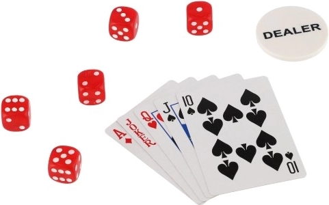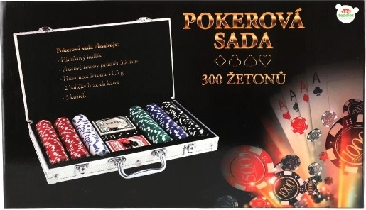 Sada zahŕňa 300 žetónov v piatich rôznych farbách, dva balíčky hracích kariet a päť kociek, čo umožňuje hrať rôzne kartové a kockové hry.