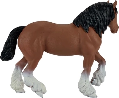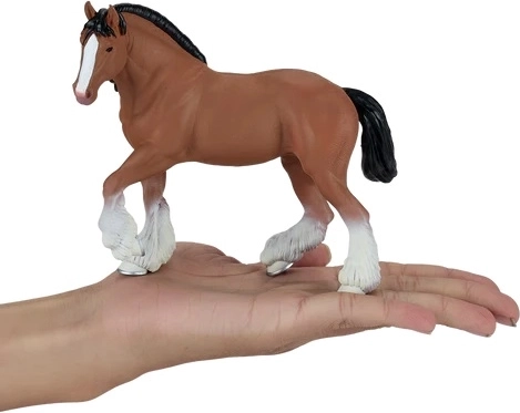 Verne zachytená mohutná stavba clydesdalského koňa: jemná textúra srsti, výrazné svaly, hriva aj typické strapce srsti na nohách. Atraktívna do vitríny aj do detskej hry.