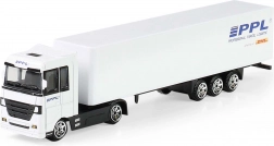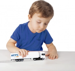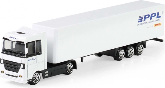 Objavte detailne spracovaný model kamiónu PPL, ktorý verne napodobňuje skutočný logistický ťahač. Kovové prevedenie kabíny dodáva odolnosť, príves z PVC s autentickým logom PPL zaujme na prvý pohľad. Vďaka voľnobehu sa model hladko pohybuje po rovnom povrchu a je ideálny na hravú prepravu „zásielok“ aj vystavenie vo vitríne.