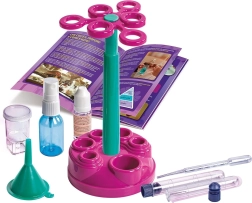 Praktický stojan na skúmavky uľahčí prácu pri odmeriavaní a miešaní, zatiaľ čo flakón umožní uložiť hotový parfum. Obrázkový sprievodca zrozumiteľne vysvetľuje postupy a inšpiruje k ďalším pokusom, ktoré podporujú kreativitu a záujem o vedu.