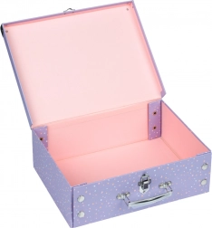 Kufrík kombinuje hravý dizajn s praktickým použitím. Kovová rúčka a okované rohy zaisťujú odolnosť a pevnosť.