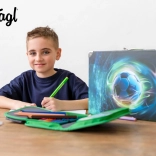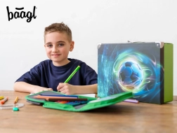 Skladací školský kufrík Baagl je ideálna voľba pre malých futbalových fanúšikov, vďaka svojmu pevnému dizajnu a štýlovému futbalovému motívu.
