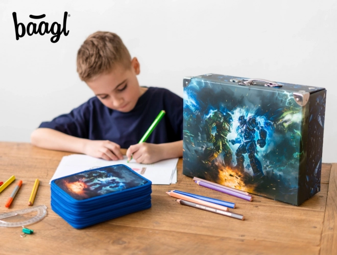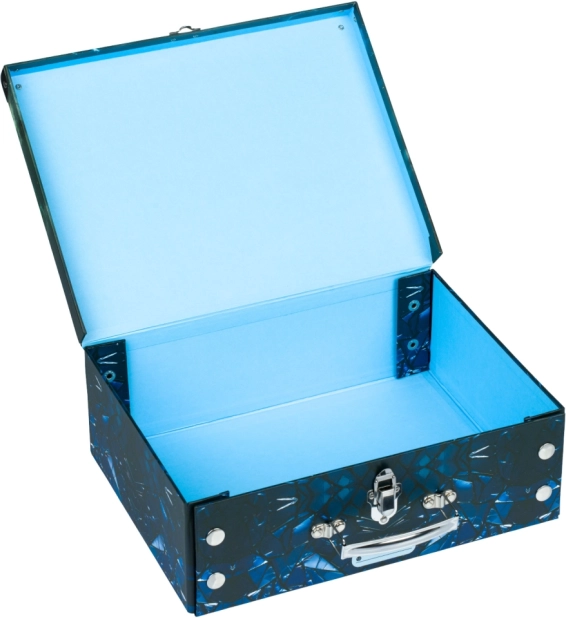 Perfektné pre školákov, tento skladací kufrík je vyrobený z pevného laminovaného papiera s kovovým uchytením pre dlhú životnosť. Unikátne patentky umožňujú ľahké zloženie a rozloženie, čo zabezpečuje, že kufrík bude vždy v najlepšej kondícii. Kovová rukoväť a klasická pracka poskytujú pohodlné nosenie a bezpečné uzavretie.