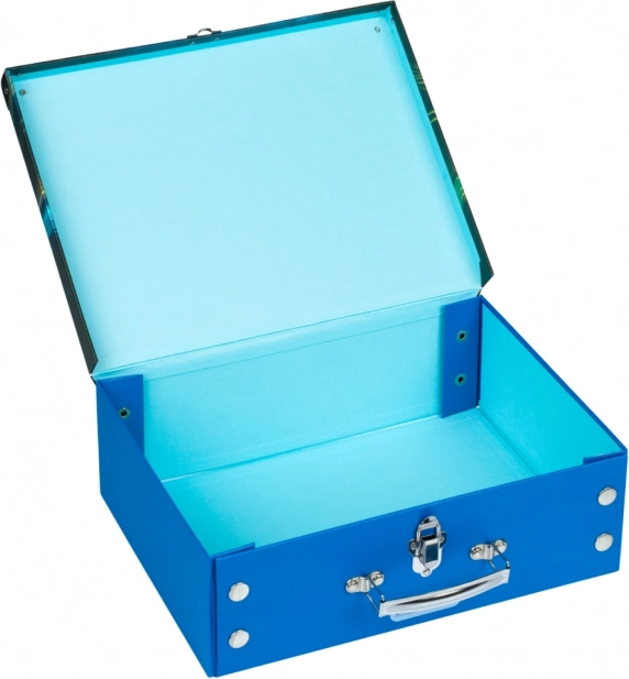 Kufrík je vyrobený z pevného laminovaného papiera s kovovými prvkami, ktoré mu dodávajú odolnosť a zabezpečujú dlhodobé používanie.