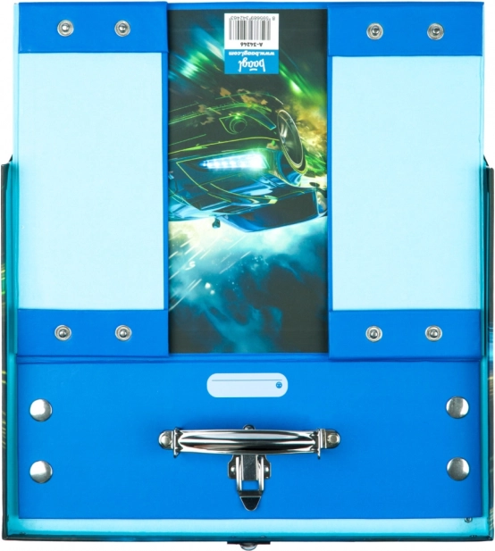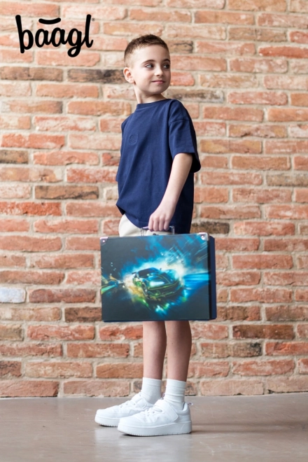 Skladací školní kufřík pre malé závodníky, ktorý spája funkčnosť a dizajn. Ideálny pre prenos alebo ukladanie školských potrieb s dôrazom na rýchlosť a vzrušenie.