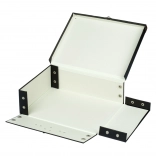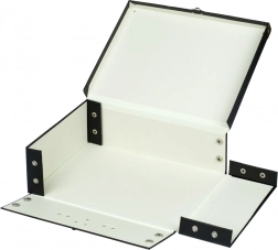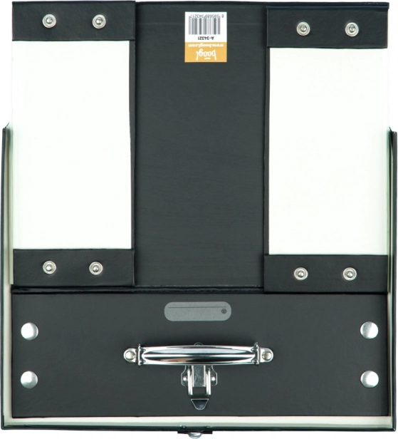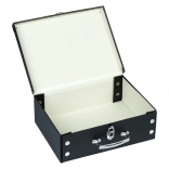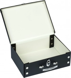 Kufrík je opatrený kovovými rohmi a klasickou prackou pre bezpečné uzavretie. Navyše je vybavený patentky, ktoré umožňujú jednoduché skladanie a rozkladanie.