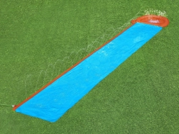 Táto šmykľavka je vybavená systémom vodných trysiek, ktorý zaisťuje optimálne zvlhčenie povrchu a umožňuje ľahký sklz. Integrované trysky sa aktivujú po pripojení záhradnej hadice. Konštrukcia umožňuje mäkké a bezpečné zakončenie vďaka nafukovaciemu koncu. Vyrobená z odolného vinylu, zaručuje dlhú životnosť.