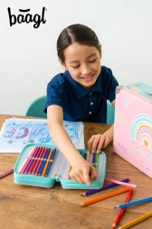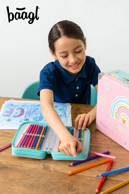 BAAGL Školský peračník trojposchodový Dúha ružový
