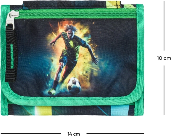 Táto štýlová peňaženka BAAGL s futbalovým motívom je navrhnutá pre deti a tínedžerov, ktorí chcú mať svoje drobnosti prehľadne a bezpečne uložené. Odolné prevedenie zvládne školský ruch aj športové aktivity, zatiaľ čo suchý zips zaručí rýchle a jednoduché zatváranie.