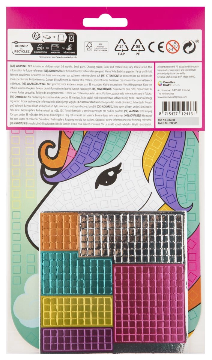 Vytvorte si svoje vlastné farebné mozaiky s kreatívnou sadou Mosaic Art vo formáte A5. Deti nalepujú rôznofarebné samolepky na predtlačené predlohy a v priebehu chvíľky vznikne pútavý mozaikový obrázok. Na výber sú motívy motýľ, dinosaurus, jednorožec a akvárium. Skvelé na rozvoj jemnej motoriky, kreativity a trpezlivosti. Vhodné od 3 rokov.