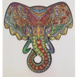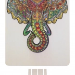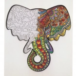 Puzzle je zložené z farebných, ručne rezaných dielikov, ktoré dohromady tvoria siluetu slona. Dieliky zahŕňajú aj malé tvary pripomínajúce zvieratká.