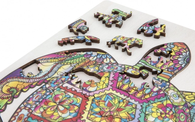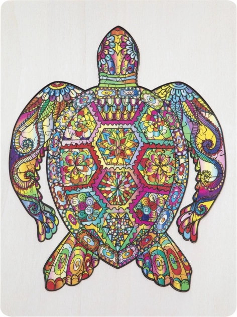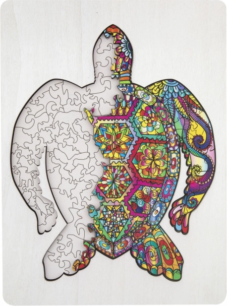 Drevené obrysové puzzle v tvare korytnačky s rôzne tvarovanými dielikmi je ideálne pre deti i dospelých. Obsahuje dieliky v tvare zvieratiek a predmetov, čo pridáva na atraktivite a zábavnosti.