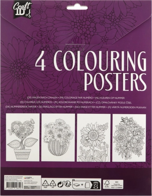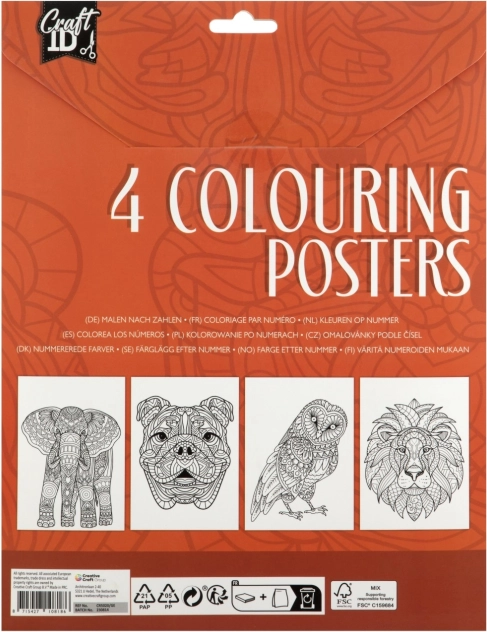 Objavte svet kreativity s našimi omaľovánkovými plagátmi od značky Craft ID. Každé balenie obsahuje štyri plagáty, ktoré vás vtiahnu do umeleckého sveta plného fantázie. Plagáty obsahujú detailné ilustrácie, od kvetinových motívov až po zvieracie tváre, ktoré čakajú na vaše farby.