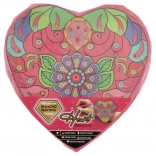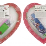 - Šablóna srdca, rôznofarebné kamienky, miska, aplikátor