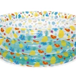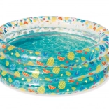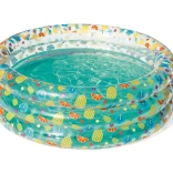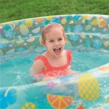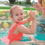 Tento štýlový detský bazénik s transparentnými stenami a veselým ovocným motívom prinesie do vašej záhrady tropickú atmosféru. Vysoké, mäkké steny poskytujú príjemnú oporu a pohodlie, zatiaľ čo trojprstencová konštrukcia zabezpečuje stabilitu aj pri dovádzaní.