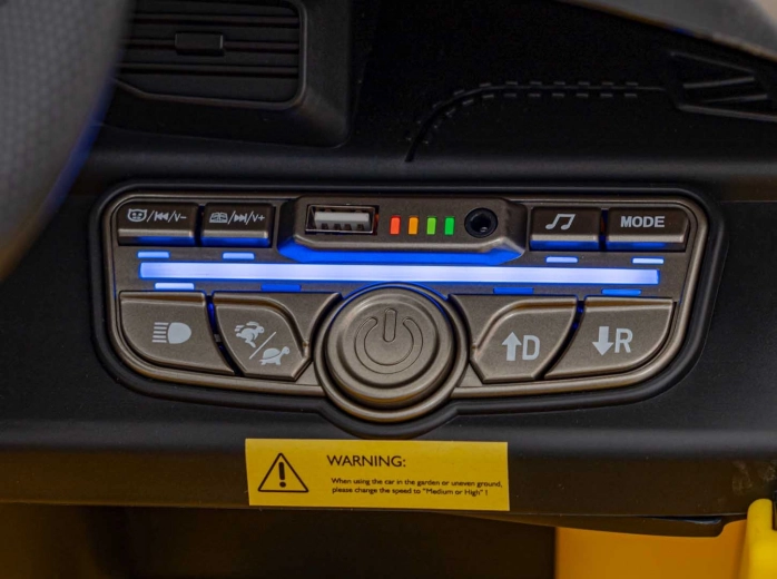 Vďaka dvom silným motorom a moderným LED svetlám je jazda s týmto autíčkom bezpečná aj za horších svetelných podmienok.