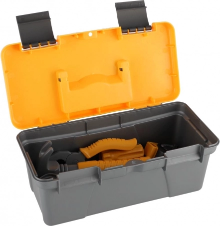 Táto bohato vybavená sada detského náradia ponúkne malým kutilom všetko, čo potrebujú k nápaditej hre – kladivko, kliešte, skrutkovače, kľúče, skrutky, matice, podložky aj „drevené“ doštičky na spájanie. Všetko je uložené v odolnom kufríku, ktorý sa ľahko prenáša a pomáha udržiavať poriadok.