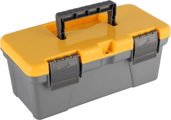 Odolný plastový kufrík s madlom a západkami udrží všetky diely pokope a ľahko sa prenáša.