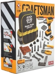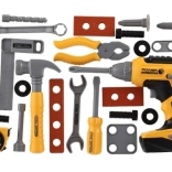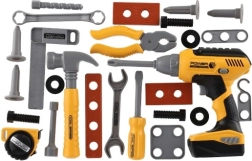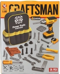 Sada obsahuje 28 kusov náradia, vrátane aku vŕtačky, ktorá simuluje skutočné pracovné nástroje pre zábavné a edukatívne hranie.