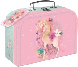 Kufrík je zdobený nádherným motívom jednorožca a kvetín, ktoré zaujmú každé dieťa.