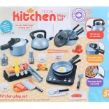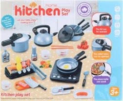 Súprava zahŕňa tiež kanvicu na vodu, panvicu, hrniec, tlakový hrniec, gril a viac než 30 ďalších kusov kuchynského náčinia, ako sú kliešte a imitácia potravín. Perfektné pre stimuláciu kreatívnej hry a podporu rozvoja motorických zručností.