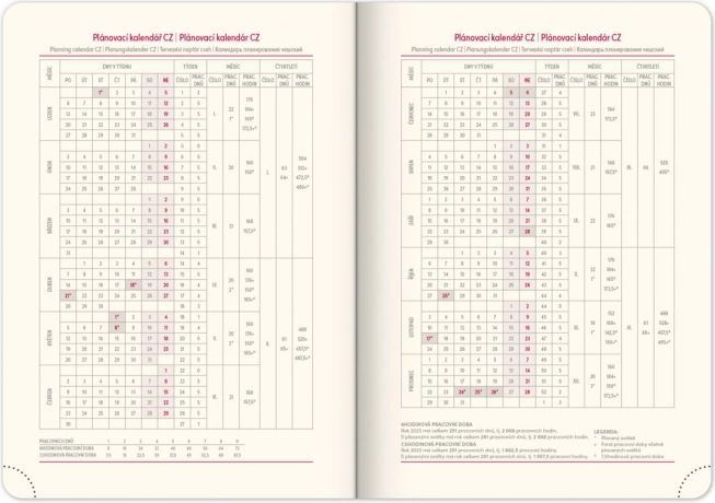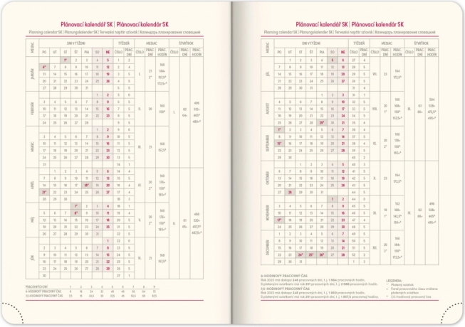 - Špeciálny pracovný plánovací kalendár.