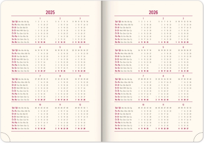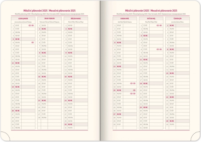 - Mesačný plánovací kalendár pre rok 2025 a 2026.