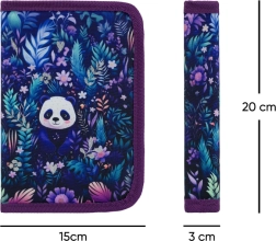 Štýlový školský set pre prvý stupeň ZŠ v motíve pandy zahŕňa ergonomickú aktovku ERGO, jednoposchodový peračník a praktické vrecúško na prezuvky či telesnú výchovu. Aktovka ponúka posuvný chrbtový systém, magnetické zapínanie Fidlock, reflexné prvky a odolné vodoodolné materiály pre bezpečné a pohodlné každodenné nosenie.