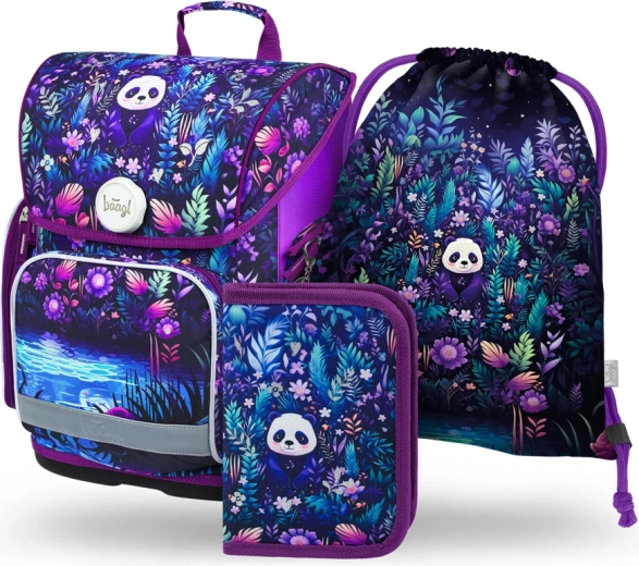 Baagl školský set Ergo Jungle Panda – aktovka, peračník a vrecúško