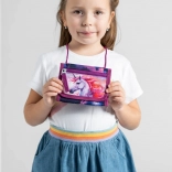 Táto ľahká peňaženka s čarovným motívom jednorožca poteší každé dieťa. Vďaka šnúrke ju možno pohodlne nosiť na krku, takže je stále po ruke a zároveň v bezpečí. Odolný textilný materiál znesie každodenné používanie v škole, na krúžkoch aj na výletoch.