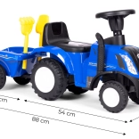 Štýlové detské odrážadlo traktor s odnímateľným prívesom a licenciou NEW HOLLAND poteší malých milovníkov strojov. Ponúka stabilnú a odolnú konštrukciu, interaktívny volant s klaksónom a zvukom štartu, bezpečnostný prvok proti prevráteniu a pohodlné sedadlo s operadlom. Súčasťou sú hračky – lopatka a hrable. Maximálna nosnosť 25 kg, ideálne od 12 mesiacov.