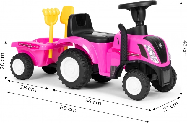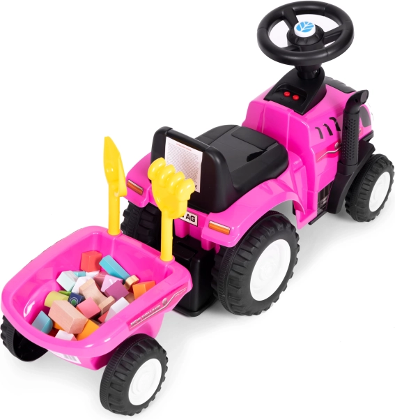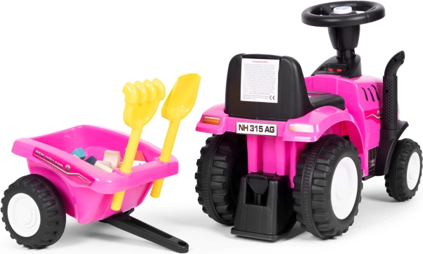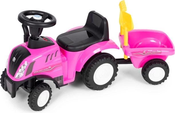 Štýlové detské odrážadlo traktor s odnímateľným vozíkom prináša hodiny aktívnej zábavy doma aj vonku. Vďaka licencii NEW HOLLAND, interaktívnemu volantu so zvukmi klaksónu a štartu motora a stabilnej, odolnej konštrukcii je ideálne pre malých farmárov od 12 mesiacov. Súčasťou je hrabličky a lopatka, pohodlné sedadlo s opierkou a prvok proti prevráteniu pre maximálnu bezpečnosť.