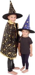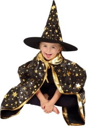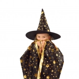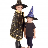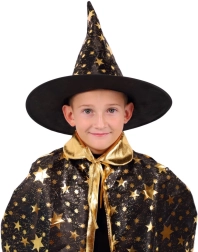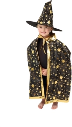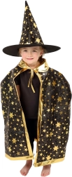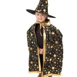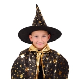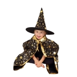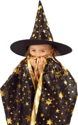 Premeňte svoje dieťa na malého kúzelníka. Táto čierno‑zlatá sada s potlačou hviezd obsahuje výrazný čarodejnícky klobúk a ladiaci plášť, ktoré sa skvele hodia na detské karnevaly, maškarné bály aj halloweenske oslavy. Vďaka ľahkým materiálom sa ľahko nosí a umožní voľný pohyb pri hrách a vystúpeniach.