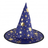 Vytvorte doma čarovnú atmosféru s týmto detským čarodejníckym klobúkom v modro‑zlatom prevedení. Ľahký materiál, široká krempa a vysoký špicatý tvar s trblietavými hviezdami zaručia výrazný vzhľad na karneval, Halloween aj tematické oslavy.