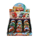 Jojo je dostupné v niekoľkých farebných variantoch, vrátane modrej, červenej, zelenej a žltej, všetky s veselými obrázkami dopravných prostriedkov.