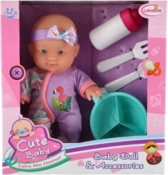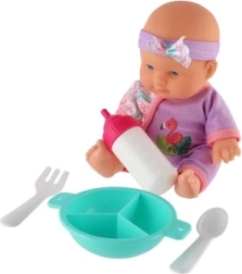 Súčasťou je fľaštička, miska, lyžička a vidlička – všetko, čo malí opatrovatelia potrebujú na kŕmenie svojho bábätka.