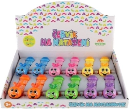 Otočte skrutkou na boku a červík sa sám rozbehne dopredu. Jednoduchý mechanizmus, ktorý deti baví znova a znova.