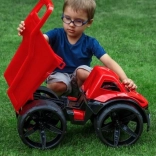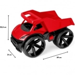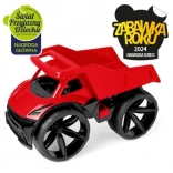 Objavte robustnú detskú sklápaciu tatrovku MAXIMUS v sýto červenej farbe s dĺžkou 59 cm. Kombinuje futuristický dizajn, ľahkú a odolnú konštrukciu a funkčnú vyklápaciu korbu s pohodlným úchytom. Ideálna na hru doma, na záhrade aj v piesku – deti si zamilujú veľké matné kolesá a prepracované detaily.