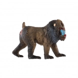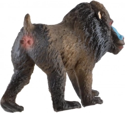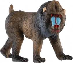 Charakteristické modré a červené sfarbenie tváre mandrila, realistická štruktúra srsti a precízne maľovanie pre autentický vzhľad.
