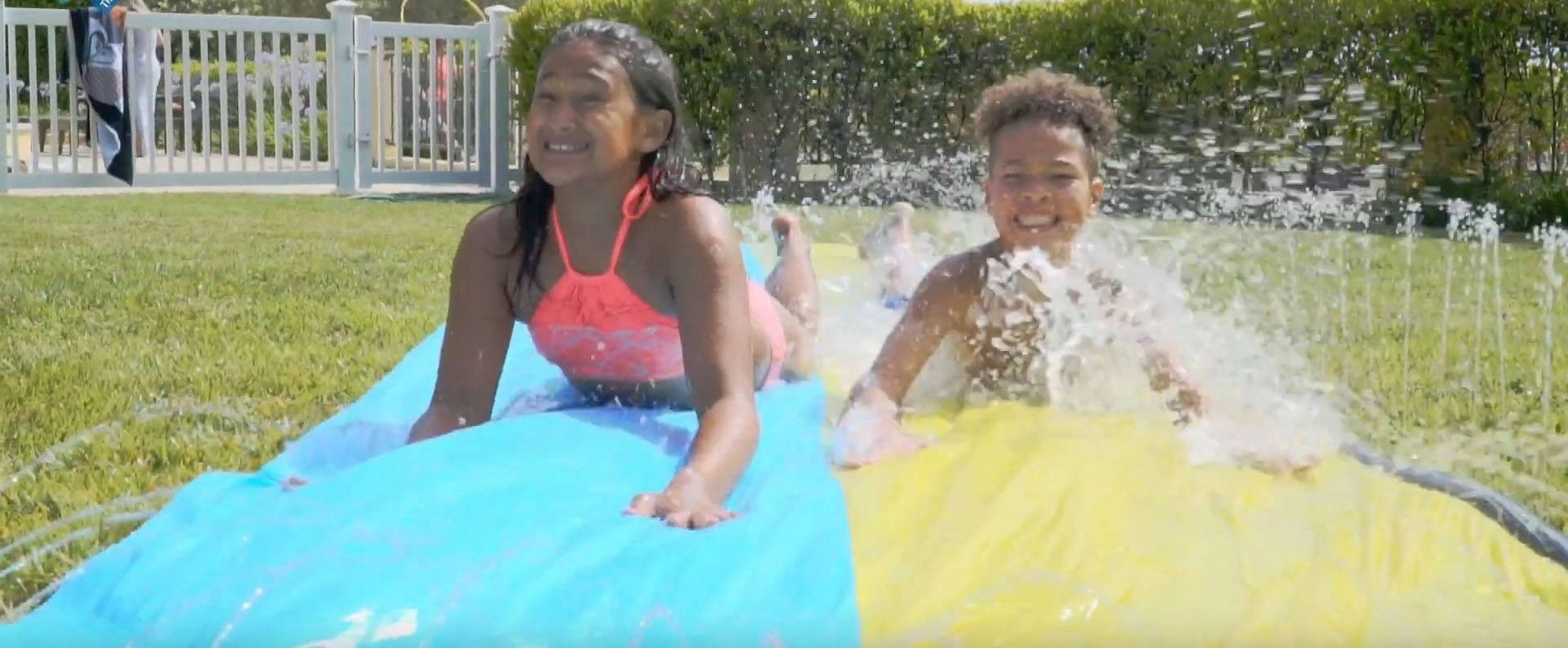 Rozbehnite sa, skočte a zveďte sa po osviežujúcej vlne zábavy! Dvojitá šmykľavka Wham‑O umožní deťom pretekať bok po boku, zatiaľ čo integrované postrekovače udržiavajú povrch dokonale klzký a príjemne chladivý. Vďaka kvalitným materiálom je šmykľavka pripravená na každodenné letné radovánky.
