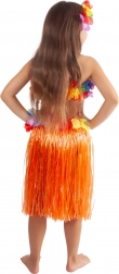 Žiarivá oranžová sukňa s kvetinovým lemom vytvorí počas chvíľky tropickú atmosféru na každej párty aj vystúpení. Obrázok ukazuje možnú štylizáciu – balenie obsahuje iba sukňu.