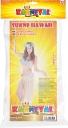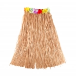 Táto štýlová havajská sukňa je perfektným základom pre exotický kostým. Je vyrobená z tenkých plastových pásikov v prírodnom odtieni a v páse zdobená pestrými kvetmi, ktoré vytvárajú výrazný tropický efekt. Dĺžka 72 cm zabezpečuje krásny pohyb pri tanci a pohodlné nosenie počas celej akcie.