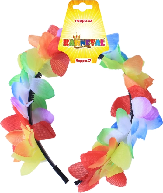 Štýlová čelenka v štýle Havaj je neprehliadnuteľný doplnok ku kostýmu. Čelenku zdobia pestrofarebné kvety, ktoré dodajú vášmu outfitu exotický šmrnc a zaistia, že budete na plese či karnevale hviezdou večera.
