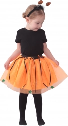 Doprajte malej parádnici výnimočný vzhľad na každú halloweensku oslavu. Tento kostým v typických oranžovo‑čiernych farbách zaujme nadýchanou tutu sukničkou a perfektne zladenou čelenkou s roztomilými tekvičkami. Vďaka pružnému pásu sa sukňa ľahko oblieka a pohodlne nosí.