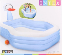 Herné centrum s integrovaným basketbalovým košom a loptou ponúka skvelú kombináciu vodných radovánok a pohybovej aktivity. Priestranné rozmery 257 × 188 × 130 cm a objem 682 l (pri výške hladiny 32 cm) zaistia dostatok miesta pre deti od 3 rokov.