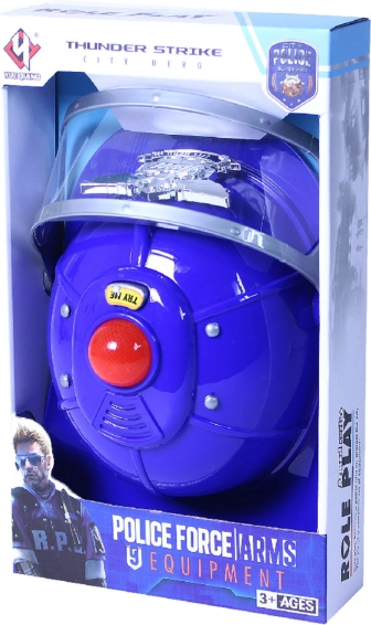 Policajná prilba pre malých hrdinov s ochranným krytom, ktorá bliká a hrá pri stlačení tlačidla. Nastaviteľná veľkosť pre pohodlné nosenie.